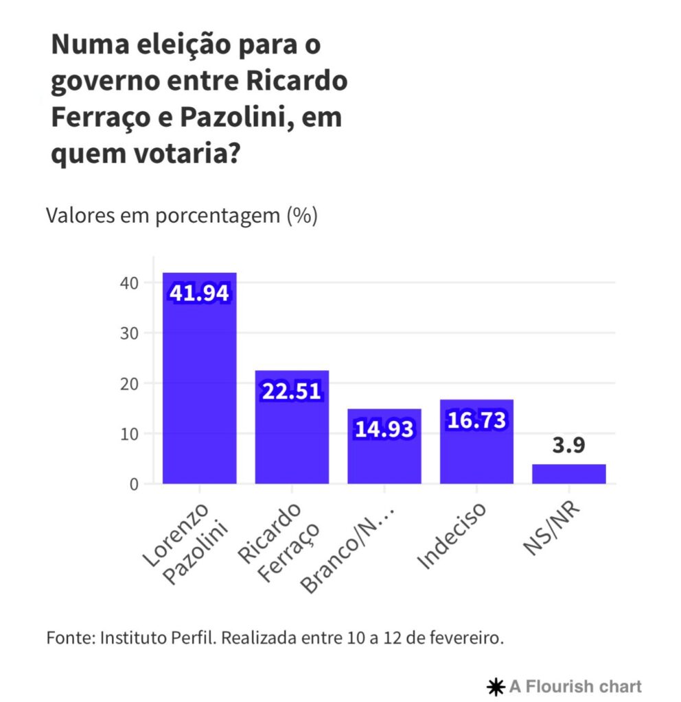 De acordo com a opinião popular, Pazolini venceria em diferentes cenários se as eleições fossem hoje.