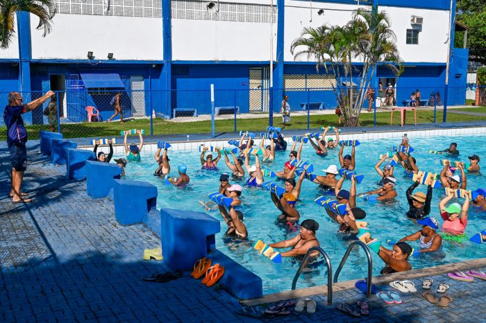 Saúde e lazer: hidroginástica da melhor idade tem café da tarde especial